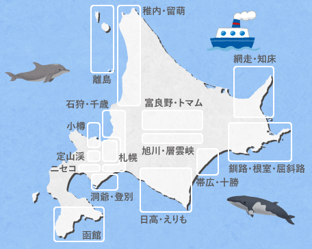 北海道は日本の主要四島の中で最北端にある島で、火山、天然温泉、スキー場で知られています。本州の次に大きな北海道本島と周辺の小さな島からなり、北東はオホーツク海、北西は日本海、南は太平洋に面しています。 広い土地を利用した農牧業と、資源に恵まれた漁業がさかんで、牛肉、生乳の生産量は日本一。 対ロシアを中心に、活発な自治体外交を展開しています。起伏の激しい大雪山国立公園には蒸気を上げる火山の旭岳があり、支笏洞爺国立公園にはカルデラ湖、地熱温泉、富士山に似た羊蹄山があります。人気のスキーリゾートにはルスツ、富良野、ニセコなどがあります。