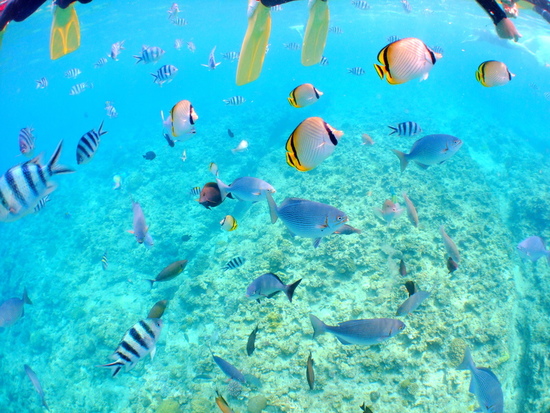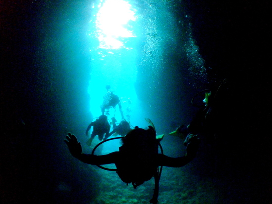 朝・昼・夕方によっても洞窟内の青色に変化が見え、魚はたちはとってもフレンドリーです。きっと忘れられないひとときになること間違いなし!
